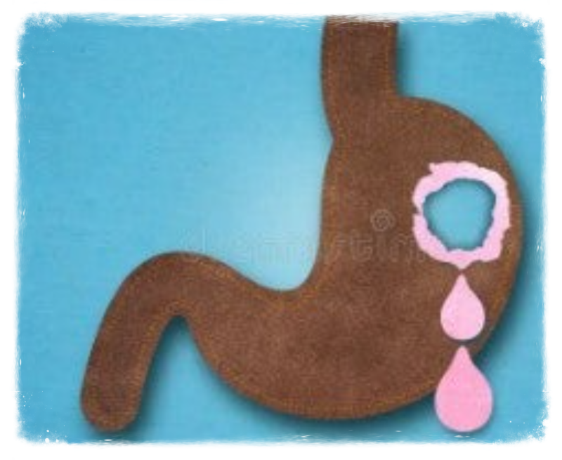 Les ulcères sont parfois difficiles à déceler car asymptomatiques ou bien ils sont accompagnés par des signes de douleurs abdominales, de vomissements occasionnels et de mauvaise haleine. On peut établir un diagnostic par les signes et les symptômes apparentés (grincement des dents liés aux douleurs abdominales, selles très foncées (voire noires) et molles, perte d’appétit. La maladie peut durer plusieurs mois.
